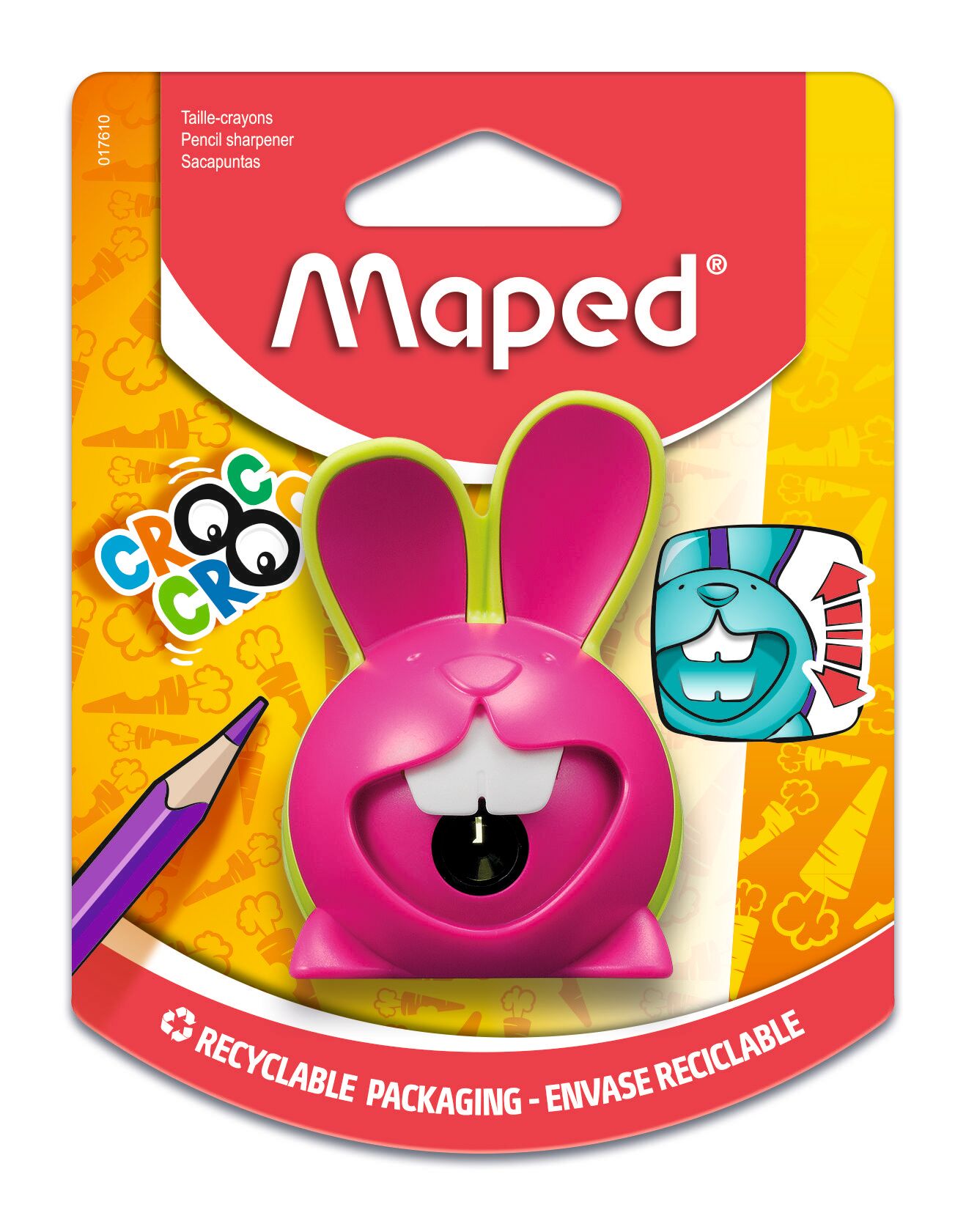Temperówka CROC CROC INNOVATION w kształcie króliczka - doskonały interaktywny towarzysz w szkolnej ławie. Temperowane kredki i ołówki wprawiają w ruch białe ząbki. Kolor różowo-zielony.