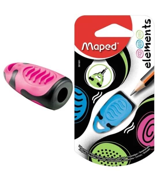 Plastikowa temperówka ELEMENTS niewielkich rozmiarów. Wyposazona w otwór jak w breloku. Może byc dowieszona do piórnika dzięki czemu wiórki nie dostaną się do środka. Gumowana powłoka wokół temperówki ułatwia właściwy uchwyt podczas temperowania. Miks 3 kolorów. JS 1 blister
