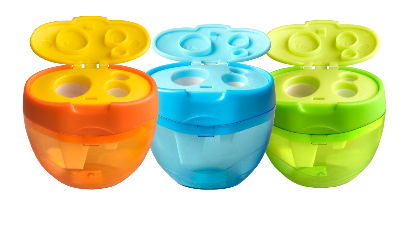 Temperówka potrójna o ergonomicznym kształcie z otworami różnej średnicy (16 mm, 11 mm, 8 mm). Stalowe ostrze gwarantuje długotrwałe użytkowanie. Transparentny zbiornik umożliwia kontrolowanie poziomu zapełnienia. x