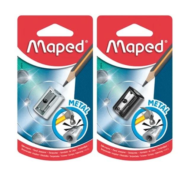 Niewielka i solidna temperówka metalowa o obłym kształcie. mix kolorów czarny i srebrny, 1 otwór. Blister 1 sztuka.