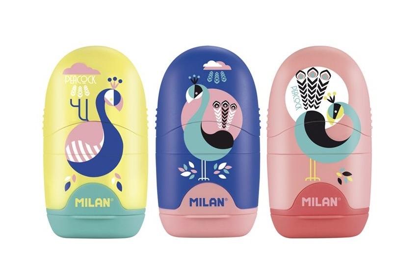Temperówka z gumką Milan Capsule peacock + 2 gumki zapasowe blister mix
