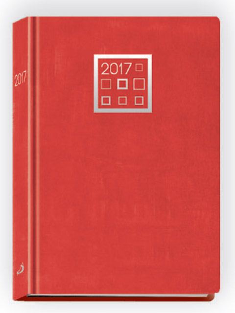 Terminarz na rok 2017, papier chamois, druk wnętrza w dwóch kolorach, perforowane narożniki kartek, tasiemka, tydzień na czterech stronach, imieniny, święta, patron dnia, informacja o liturgii dnia, refleksja na każdą niedzielę, myśl na każdy tydzień, miejsce na notatki, skrócone kalendarium miesiąca bieżącego, miejsce na adresy i telefony