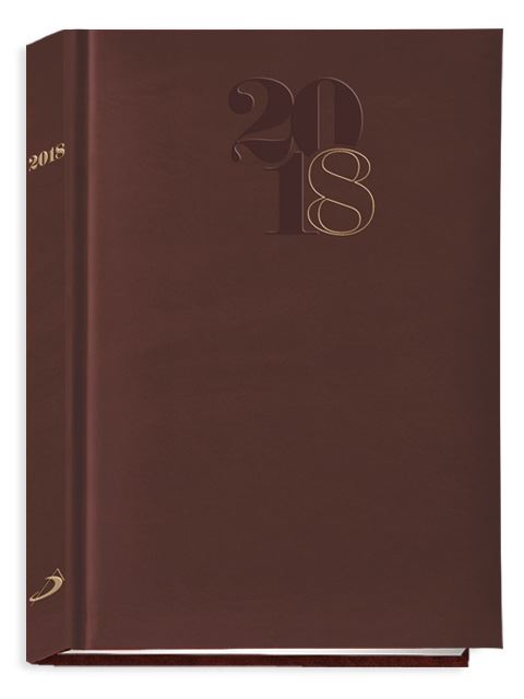 Terminarz na rok 2018, papier chamois, druk wnętrza w dwóch kolorach, perforowane narożniki kartek, tasiemka, każdy dzień na oddzielnej stronie, imieniny, święta, patron dnia, informacja o liturgii dnia, wschód-zachód słońca, fazy księżyca, myśl na każdy dzień, terminarz spotkań, miejsce na notatki, skrócone kalendarium miesiąca bieżącego, miejsce na adresy i telefony.