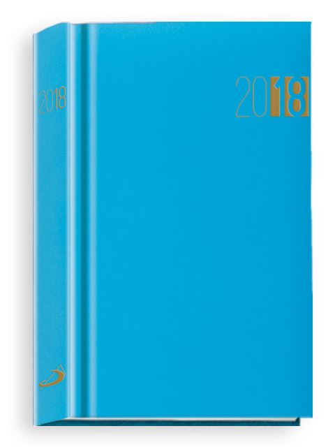 Terminarz na rok 2018, papier chamois, druk wnętrza w dwóch kolorach, perforowane narożniki kartek, tasiemka, każdy dzień na oddzielnej stronie, imieniny, święta, patron dnia, informacja o liturgii dnia, wschód-zachód słońca, fazy księżyca, myśl na każdy dzień, terminarz spotkań, miejsce na notatki, skrócone kalendarium miesiąca bieżącego, miejsce na adresy i telefony.