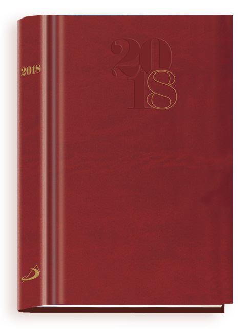 Terminarz na rok 2018, papier chamois, druk wnętrza w dwóch kolorach, perforowane narożniki kartek, tasiemka, każdy dzień na oddzielnej stronie, imieniny, święta, patron dnia, informacja o liturgii dnia, wschód-zachód słońca, fazy księżyca, myśl na każdy dzień, terminarz spotkań, miejsce na notatki, skrócone kalendarium miesiąca bieżącego, miejsce na adresy i telefony.