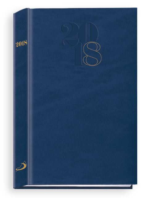 Terminarz na rok 2018, papier chamois, druk wnętrza w dwóch kolorach, perforowane narożniki kartek, tasiemka, każdy dzień na oddzielnej stronie, imieniny, święta, patron dnia, informacja o liturgii dnia, wschód-zachód słońca, fazy księżyca, myśl na każdy dzień, terminarz spotkań, miejsce na notatki, skrócone kalendarium miesiąca bieżącego, miejsce na adresy i telefony.