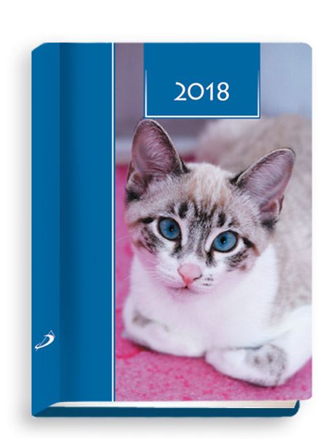 Terminarz na rok 2018, papier chamois, druk wnętrza w dwóch kolorach, perforowane narożniki kartek, tasiemka, tydzień na czterech stronach, imieniny, święta, patron dnia, informacja o liturgii dnia, refleksja na każdą niedzielę, myśl na każdy tydzień, miejsce na notatki, skrócone kalendarium miesiąca bieżącego, miejsce na adresy i telefony.
