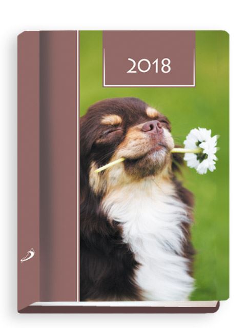 Terminarz na rok 2018, papier chamois, druk wnętrza w dwóch kolorach, perforowane narożniki kartek, tasiemka, tydzień na czterech stronach, imieniny, święta, patron dnia, informacja o liturgii dnia, refleksja na każdą niedzielę, myśl na każdy tydzień, miejsce na notatki, skrócone kalendarium miesiąca bieżącego, miejsce na adresy i telefony.