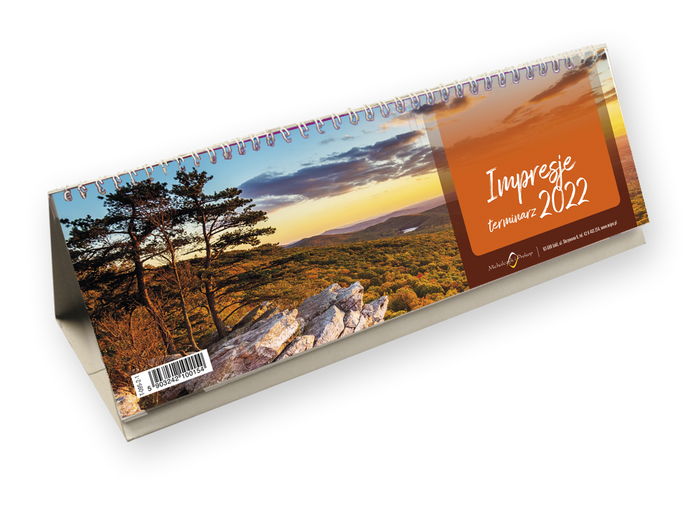 format: 290 x 100 rodzaj papieru: kreda błyszcząca 130g/m2 biały układ kalendarium: 1 tydzień - 1 strona ilość stron: 62 druk: pełnokolorowy