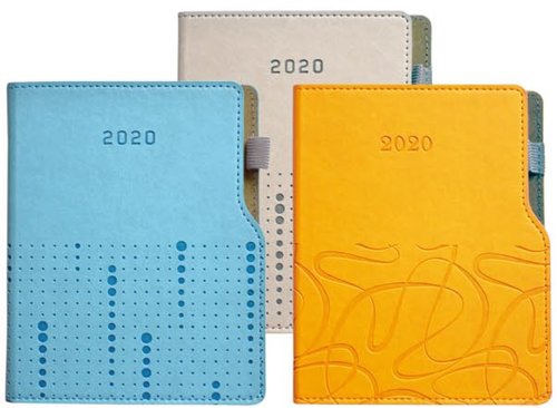 Okładka: VIVELLA twarda , z wcięciem, tłoczenie na części okładki + uchwyt na długopis