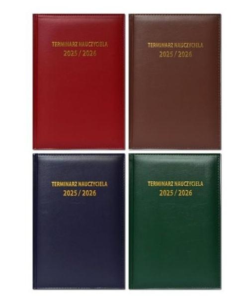 Opis produktuZasady bezpieczeństwaOKŁADKA: miękka, skóropodobna z gąbką 3mm i obszyciem, złocenie "Terminarz Nauczyciela 2025/2026" BLOK: 140x205 mm, 360 str., papier biały 64g/m2, druk 2 kolory, tasiemka, kolorowa mapa Polski oraz Europy na wyklejkach, blok kalendarza szyty nićmi, kapitałka, perforowane narożniki x