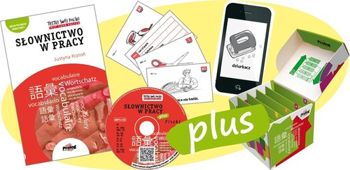 Słownictwo 1 PLUS"" to pozycja dla wszystkich, którzy chcą w optymalnie efektywny sposób uczyć się polskich słówek. W pracy z tym materiałem maksymalnie skorzystają zarówno wzrokowcy jak i słuchowcy.Przedstawiciele aż pięciu kręgów językowych znajdą na fiszkach precyzyjne tłumaczenia słówek we własnym języku(angielski, niemiecki, włoski, hiszpański, rosyjski).Pakiet Słownictwo 1 PLUS zawiera:""Słownictwo w pracy PLUS"" to pozycja dla wszystkich, którzy chcą w optymalnie efektywny sposób uczyć się polskich słówek. W pracy z tym materiałem maksymalnie skorzystają zarówno wzrokowcy jak i słuchowcy.Przedstawiciele aż pięciu kręgów językowych znajdą na fiszkach precyzyjne tłumaczenia słówek we własnym języku(angielski, niemiecki, włoski, hiszpański, rosyjski).Pakiet Słownictwo w pracy PLUS zawiera:Książkę ""Testuj Swój Polski Słownictwo 1""*ilustrowane fiszki, przetłumaczone na pięć języków (ANG, DE, IT, ES, RUS)pudełko na fiszki (do samodzielnego złożenia)płytę MP3 z nagranymi 299 fiszkami (ANG, DE, IT, ES, RUS), które można odtwarzać również na urządzeniach mobilnych*** Książka ""Słownictwo w pracy"" zawiera:70 ćwiczeń (testów) + kluczbogato ilustrowane, motywujące do nauki i różnorodne ćwiczenia zadania jedno- i wielokrotnego wyboru, uzupełnianie, dopasowywanie, komiksy, i innesłowniczek PL / ENG / DEwskazówki dla użytkownika""TESTUJ SWÓJ POLSKI SŁOWNICTWO W PRACY"" to zbiór ćwiczeń na poziomach A2-B1, który można wykorzystać do samodzielnej nauki oraz jako materiał pomocniczy do zajęć w grupie. Książka przeznaczona dla dorosłych, którzy potrzebują języka polskiego do komunikacji w miejscu pracy, w Polsce i za granicą. W ćwiczeniach można znaleźć dużo informacji realioznawczych z polskiego rynku pracy. Zawarte w książce praktyczne wskazówki mogą być pomocne dla obcokrajowców, którzy szukają w Polsce pracy, chcą założyć firmę oraz kontaktować się po polsku z urzędami, swoimi współpracownikami, partnerami biznesowymi itd.**Użytkownicy systemu Android, w ramach zakupu pakietu PLUS, pobrać mogą ze Sklepu Play aplikację z nagraniami fiszek.Użytkownicy, którzy nie zakupili zestawu PLUS i nie posiadają kodu dostępu, skorzystać mogą z trzech pierwszych ćwiczeń w aplikacji.