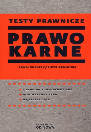 Testy prawnicze. Prawo karneStan Prawny -1 lutego 2014Publikacja stanowić będzie doskonałą formę nie tylko sprawdzenia, ale i zdobycia wiedzy z zakresu Kodeksu karnego. Obejmuje ponad 300 pytań zamkniętych dotyczących poszczególnych przepisów Kodeksu karnego, ułożonych w kolejności odpowiadającej systematyce tegoż kodeksu. Budowa pytań i odpowiedzi nawiązuje do testów przeprowadzanych w ramach egzaminów wstępnych na aplikację adwokacką, radcowską, notarialną oraz ogólną. Zbiór Testów Prawniczych stanowi również bardzo dobry materiał przygotowawczy do egzaminu z prawa karnego dla studentów kierunków prawo i administracja. Uniwersalność niniejszego zbioru czyni go również przydatnym dla aplikantów przygotowujących się do corocznych kolokwiów z dziedziny prawa karnego. Pytania zawierają trzy proponowane odpowiedzi, z których tylko jedna jest prawidłowa. Każde pytanie i odpowiedź bazuje na literalnej treści przepisu ustawy, co doskonale pozwala zweryfikować stan wiedzy osoby rozwiązującej zadania testowe co do znajomości norm Kodeksu karnego.