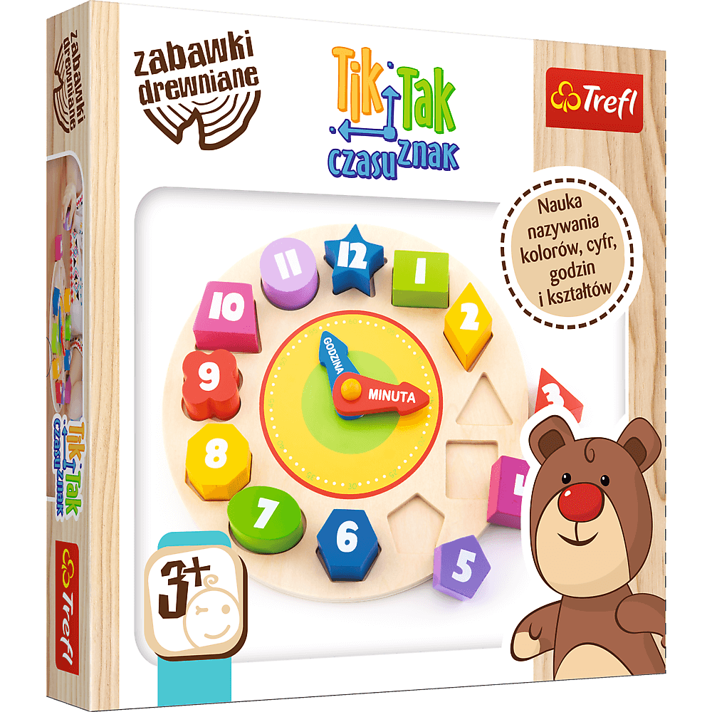 Tik Tak Czasu Znak kształtuje umiejętności logicznego myślenia i koncentracji, wspomaga naukę nazywania kolorów, liczb i godzin, wzmacnia koordynację wzrokowo-ruchową, jak również jest doskonałą zabawką do ćwiczenia zręczności i umiejętności manualnych
