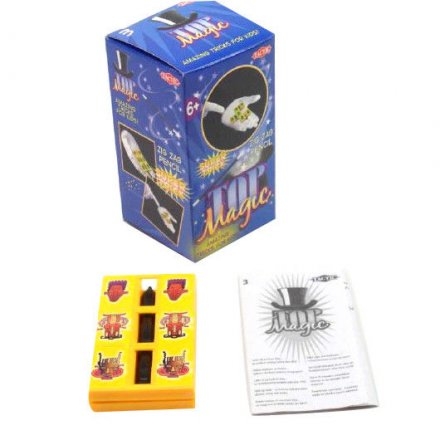 ZASKOCZ PRZYJACIÓŁ MAGICZNYMI SZTUCZKAMI!Top Magic to seria zestawów sztuczek możliwych do wykonania nawet przez kilkuletnie dzieci. Magiczne przedmioty, znikające karty i wiele innych niespodzianek dla ciebie i twoich najbliższych!
