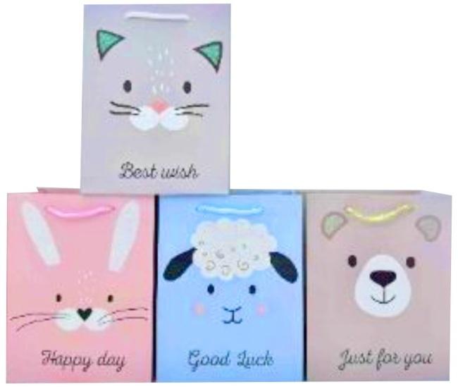 Opis produktuZasady bezpieczeństwaPodaruj uśmiech z naszymi uroczymi torebkami prezentowymi! Ten zestaw 12 torebek, każda z wizerunkiem sympatycznego zwierzaka (kotka, zajączka, owieczki i misia), to idealne rozwiązanie do pakowania drobnych upominków na każdą okazję. Ich wesołe wzory i napisy takie jak "Best wish", "Happy day", "Good Luck" i "Just for you" dodadzą Twoim prezentom osobistego i radosnego charakteru. Doskonałe na urodziny, imieniny, święta, Dzień Dziecka czy inne okoliczności, w których chcesz sprawić komuś przyjemność. Cena dotyczy jednej torebki, a opakowanie zbiorcze zawiera 12 sztuk, co zapewnia zapas na wiele okazji. x