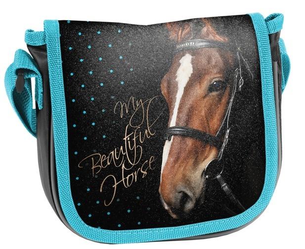 Torebka na ramię z regulowanym paskiem, jedna komora, zapinana na rzep.