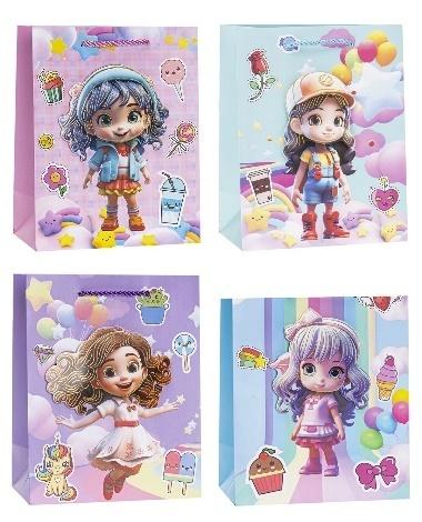 Opis produktuZasady bezpieczeństwaMix wzorów, towar wysyłany losowo. Cena za sztukę. Torebka dziecięce Pop-Up 3D 26x32x10cm mix ROZETTE