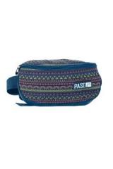 Saszetka na pas, nerka. Jedna pojemna komora, regulowany pasek zapinany na klamrę.