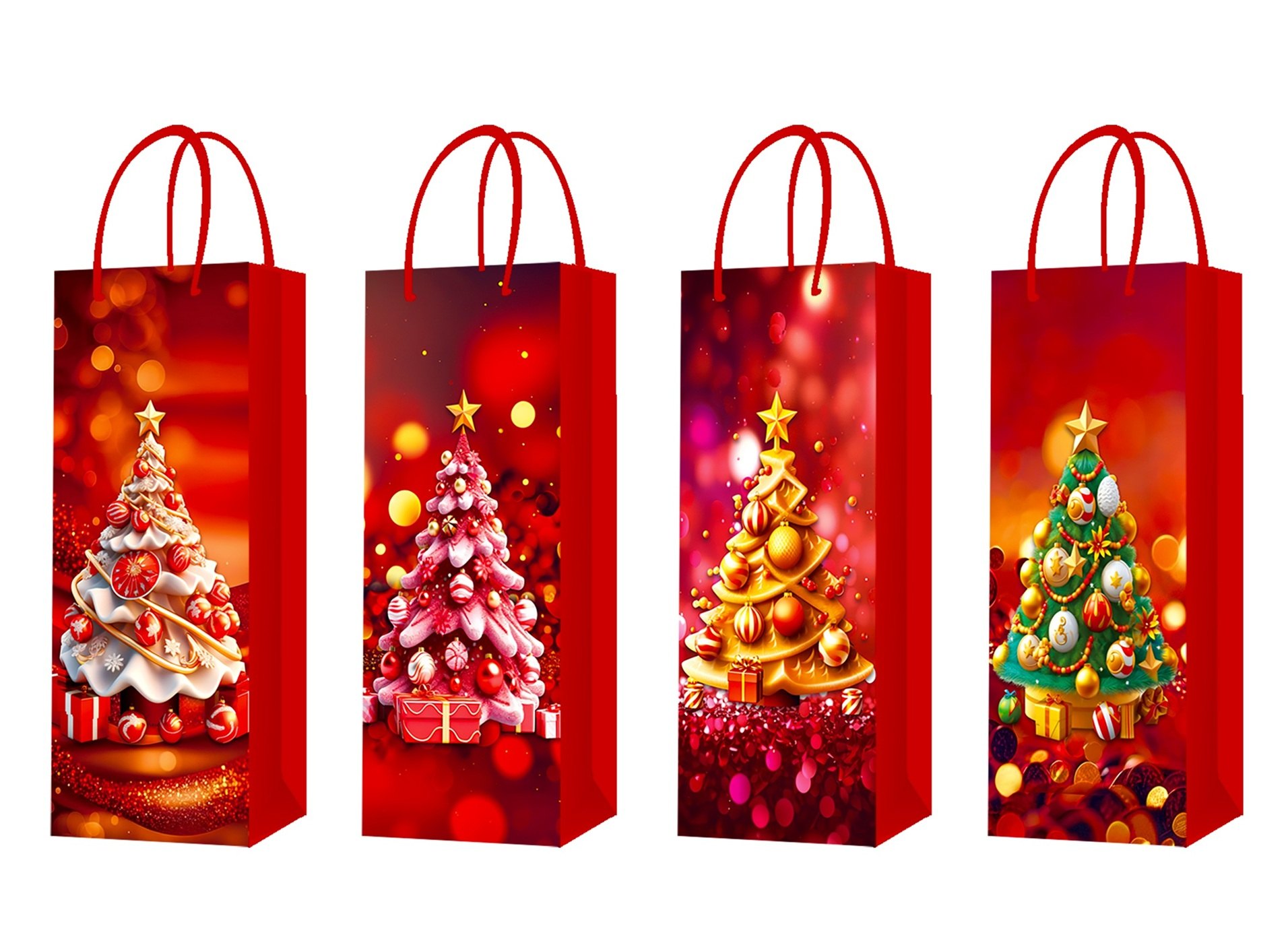 Opis produktuZasady bezpieczeństwaŚwiąteczna torebka prezentowa na butelkę, platera Wymiary torebki: 36x12x9