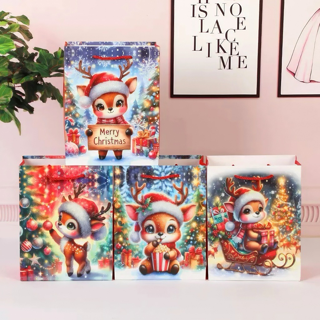 Opis produktuZasady bezpieczeństwaŚwiąteczna torebka prezentowa M z brokatem Mix wzorów, produkt wysyłany losowo, cena za 1 sztukę x