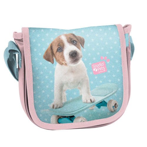 Torebka na ramię z regulowanym paskiem, jedna komora, zapinana na rzep. Materiał 300x300D/PVC, glitter PVC. Rozmiar 17x15x4 cm
