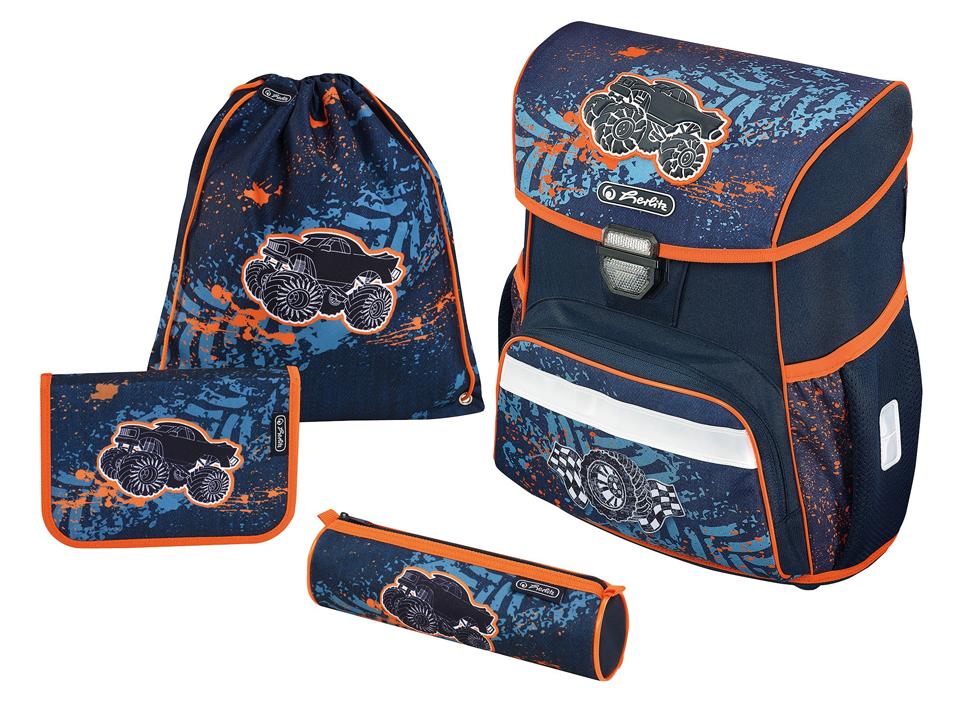 Ergonomicznie ukształtowane i wykonane z przepuszczającego powietrze plecy tornistra, miękko wyściełane szelki, łatwe zapinanie za pomocą klamry ze światełkiem odblaskowym, dwie otwarte boczne kieszenie ze ściągaczem, przednia kieszeń zapinana na zamek, wewnętrzna przegroda organizująca przestrzeń tornistra, materiał łatwy do czyszczenia, plastikowa kieszonka z planem lekcji na wewnętrznej stronie górnej klapy, stabilna plastikowa podstawa, materiał odblaskowy 3M Scotchlite na przedniej i bocznych kieszeniach oraz na szelkach. W komplecie: piórnik 16 cz., piórnik kosmetyczka okrągła oraz worek szkolny. szerokość: 31 cm, wysokość: 37 cm, głębokość: 24 cm, pojemność: 15 l, waga: ok. 900 g