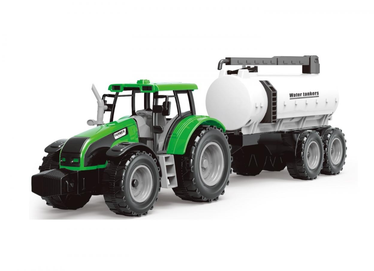 Traktor z przyczepą beczkowozem