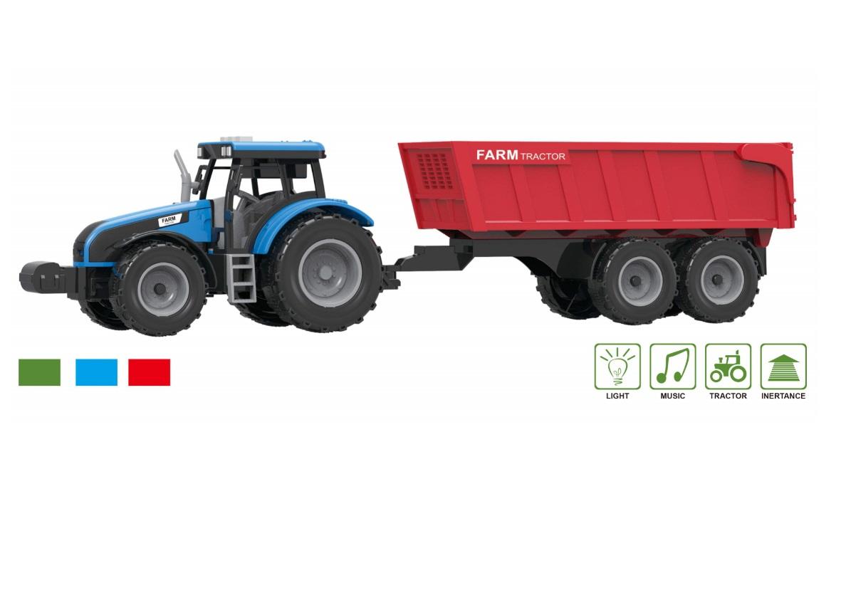 podnoszona maska skala - 1:32, traktor 22 cm, przyczepa 24 cm odgłos traktora, świecą się światła baterie załączone mix kolorów, towar wysyłany losowo x
