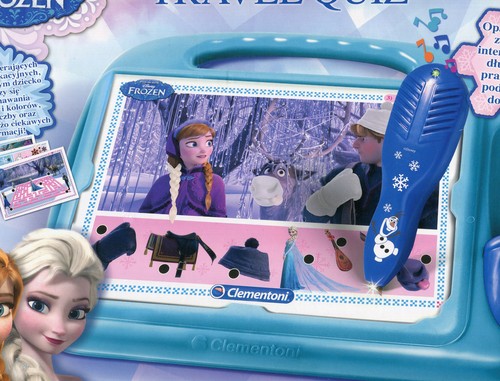 Odkryj wesołą naukę przez zabawę w towarzystwie sympatycznych postaci i przyjaciólek Krainy Lodu! Komplet 9 kart zawierających 18 gier edukacyjnych i quizów stymuluje rozwój zdolności uwagi, obserwacji i logicznego myślenia, pomagając dzieciom w wieku przedszkolnym w stopniowym przyswajaniu podstawowych pojęć takich, jak kolory, kształty, wielkości, orientacja w przestrzeni, liczby i ilości. Każde z zadań dziecko rozwiąże przy pomocy elektronicznego długopisu Krainy Lodu, który zaświeci i wyda dźwięk przy każdej poprawnej odpowiedzi. W ten sposób dziecko samodzielnie i bez pomocy dorosłego może sprawdzić własne postępy. Praktyczna podkładka na ułożenie kart posłuży jako mini stoliczek podczas gry.