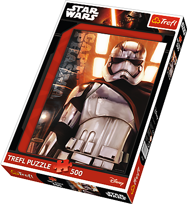 Puzzle 500 elementów z wizerunkiem szturmowca Imperium z VII epizodu sagi Star Wars. Po ułożeniu powstanie obrazek o wymiarach 48x34cm. Wysoką jakość, nasycenie kolorów i bezpieczeństwo układania zapewnia kalandrowany papier odbijający światło, pokryty ekologicznymi farbami spożywczymi.
