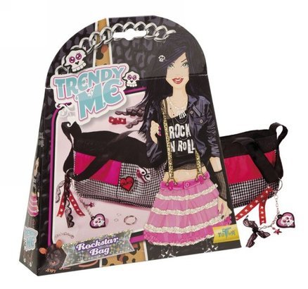 Zrób swoją własną mini torebkę.Zawartość: mini torebka, łańcuszek z zamknięciem, brelok do kluczy, różne wstążki, metalowe kółka, 1 zawieszka gwiazdka, 1 zawieszka czaszka, 2 znaczki przypinki, instrukcja
