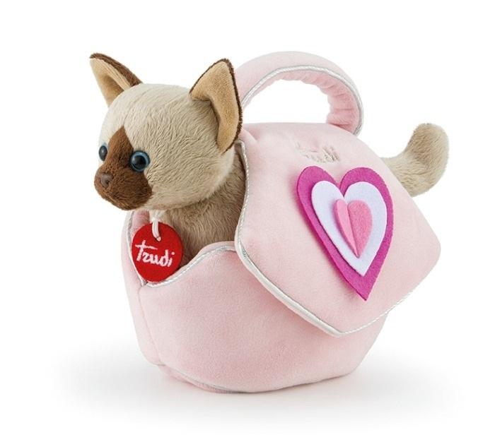 Pluszowa przytulanka - kotek w różowej torebce z serduszkami
