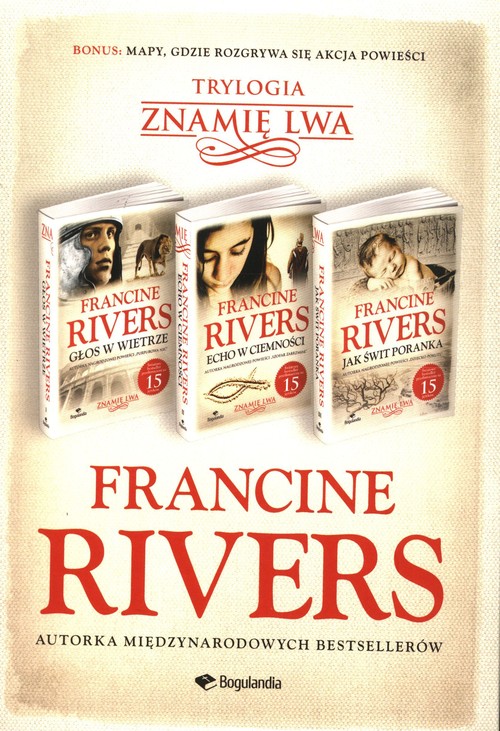 FRANCINE RIVERS - jedna z najpopularniejszych pisarek amerykańskich, autorka ponad 20 bestsellerowych powieści, przetłumaczonych na dwadzieścia języków, m.in. trylogii: „Głos w wietrze", „Echo w ciemności", „Jak świt poranka". Zdobyła liczne nagrody i zaszczyty, w tym Christy Award, za stworzenie inspirującej fabuły o charakterze historycznym, złoty medal Amerykańskiego Stowarzyszenia Wydawców Chrześcijańskich ECPA za powieść „Ostatni zjadacz grzechu" (zekranizowaną przez Michaela Landona). W 2010 roku książki Francine zostały uznane za najlepiej sprzedające się tytuły na liście „New York Timesa".