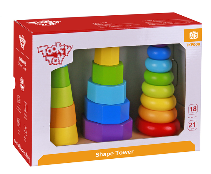 Trzy Wieże to drewniany sorter kolorów i kształtów.