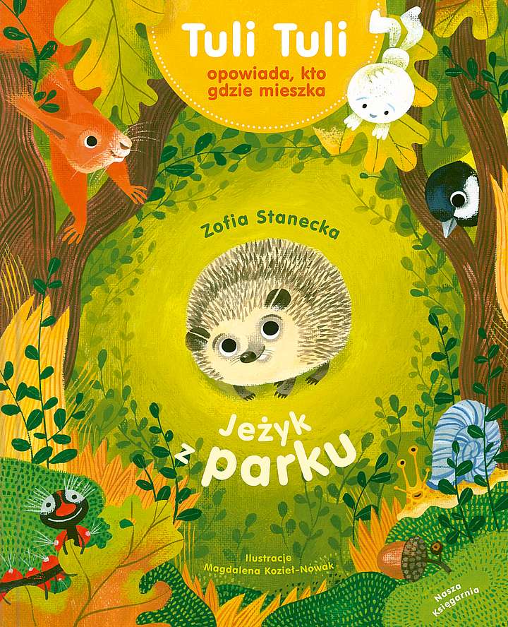 W parku na świat przychodzą dwa jeżyki Tycia i Tuptuś. Poza nimi żyje tu tyle zwierząt i ptaków! Niektóre są groźne. Trzeba uważać i szybko zwinąć się w kolczastą kulkę. Tycia musi się wiele nauczyć. Na przykład co to jest zima i jak się do niej przygotować. Tuli Tuli opowiada, kto gdzie mieszka to przepięknie zilustrowana seria edukacyjna dla najmłodszych. Każda książka to inne środowisko życia i nowy bohater. Dzieci śledzą jego przygody, a przy okazji poznają wiele przyrodniczych ciekawostek. Z każdej kupionej książki 1 zł przekazujemy na Fundację Primum ratującą jeże. Zofia Stanecka czyta, odkąd pamięta. Córka nauczyciela i bibliotekarki, wychowała się pośród książek. Wielbicielka Leśmiana, Dickensa i Tolkiena, angielskich książek dla dzieci i teatru. Pisze książki o Basi, opowiadania i powieści. Najbardziej lubi wymyślać baśnie, w których znajduje to wszystko, co w literaturze kocha najbardziej: tajemnicę, prawdę, piękno i odrobinę magii. Laureatka nagród: tytuł Najlepsze dla dziecka w plebiscycie czytelników miesięcznika Dziecko dla serii o Basi (2009), wpis na Listę Skarbów Muzeum Książki Dziecięcej w Warszawie dla Świata według dziadka i Domino i Muki. Po drugiej stronie czasu czy Nagroda jury w kategorii najlepsza książka dla dzieci w konkursie Najlepsza książka na lato dla Basi i wyprawy do lasu (2015). Magdalena Kozieł-Nowak jest ilustratorką ze skłonnością do przesady. Przesadza z pomysłami, z kolorem, ze słodyczami, a w wolnych chwilach przesadza kwiatki. I dobrze jej tak, bo nie lubi ograniczeń, chce eksperymentować z techniką i stylistyką ilustracji, by nie zanudzić siebie, a przede wszystkim dzieci. Zdarza się, że popełni rysunek satyryczny z nadzieją, że dzięki temu i dorośli czasem się uśmiechną. Po ukończeniu Akademii Sztuk Pięknych we Wrocławiu współpracowała z wieloma wydawnictwami i dzięki temu regał z książkami, do których robiła ilustracje, się zapełnia. Na szczęście jest jeszcze kilka wolnych półek i ma nadzieję, że kiedyś również będą zajęte. Ona także chce być zajęta tym, co robi, czyli kolorowaniem świata, do końca świata! x