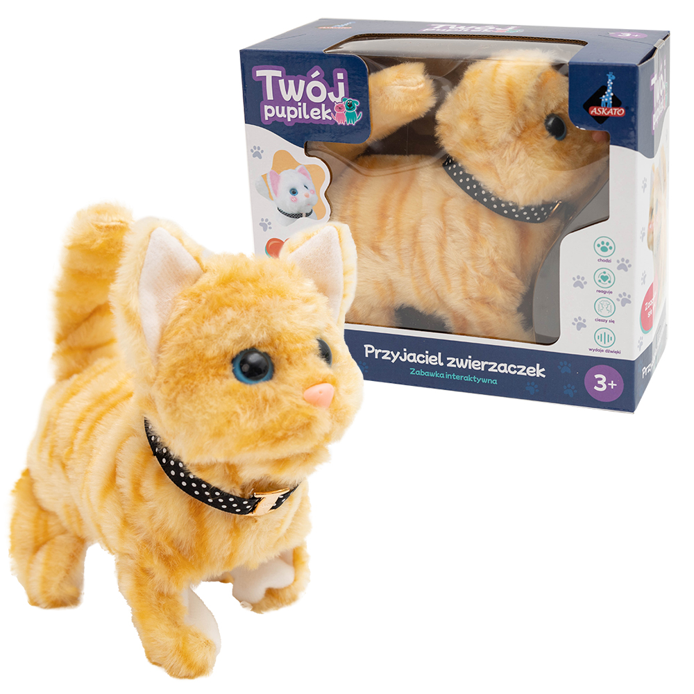 Opis produktuZasady bezpieczeństwaTwój Pupilek kotek. Chodzi, miauczy, rusza pyszczkiem. zasilanie: 2xAA (brak w zestawie) Wymiary opakowania:26.5x4x19 cm wiek: 3+ x