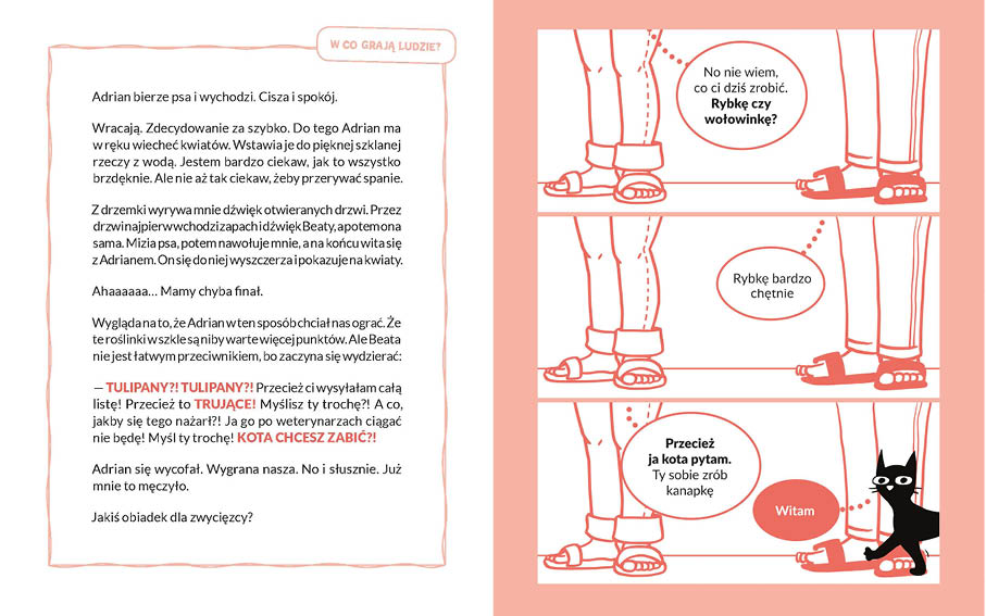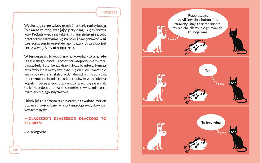 Opis produktuZasady bezpieczeństwaCO MYŚLI NAJBARDZIEJ TYPOWY KOT POLSKIEGO INTERNETU? Ludzie są naprawdę łatwi w tresurze. Jeśli się długo miauczy, zrobią praktycznie wszystko, czego chcesz. Nie żebym ich nie lubił czy coś. Kiedy tak sobie leżę na tych moich ludziach i mnie głaszczą, to sobie jednak myślę, że to jest miłość. Że jednak są bardzo potrzebni, miziają, otwierają puszki z żarciem. No i miziają. Ale z drugiej strony – nie są zbyt kumaci, mówią „kici, kici”, człapią jak pingwiny, mają owłosienie w przypadkowych miejscach i noszą koszulki z nadrukiem. Doprawdy smutne. Nie to co my, koty, najbardziej rozwinięte istoty na ziemi. Te wibrrrysy salonowe, to spojrzenie pełne mądrości i powagi, ten królewski szyk… No i jest też pies. Pies polega na tym, że trzeba go w życiu znosić. Jak by się tu pozbyć dziada? x