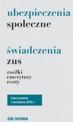 Publikacja jest zbiorem najistotniejszych przepisów dotyczacych ubezpieczeń społecznych i świadczeń wypłacanych przez ZUS tj. ustawę o systemie ubezpieczeń społecznych, ustawę o emeryturach i rentach z FUS, ustawę o świadczeniach przedemerytalnych, o rencie socjalnej, świadczeniach pieniężnych z ubezpieczenia społecznego w razie choroby i macierzyństwa, ustawę o ubezpieczeniu społecznym z tytułu wypadków przy pracy i chorób zawodowych oraz akty wykonawcze. Zaletą książki jest jej praktyczny, poręczny format i przejrzysty układ graficzny. Łatwą orientację w materiale umożliwia obszerny skorowidz. Zmiany oczekujące na wejście w życie umieszczono w ramkach. Stan prawny: 1 września 2015 r.