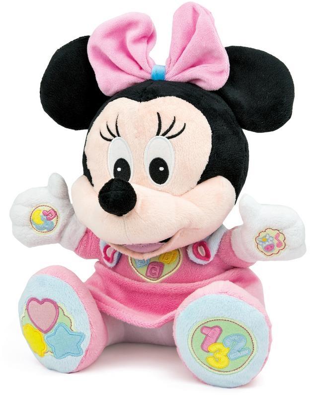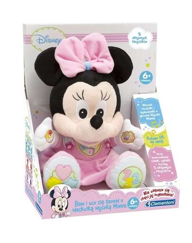 • Po naciśnięciu jednego z 5 interaktywnych przycisków Minnie śpiewa różne wesołe piosenki o literkach, cyferkach, kształtach i kolorach.
