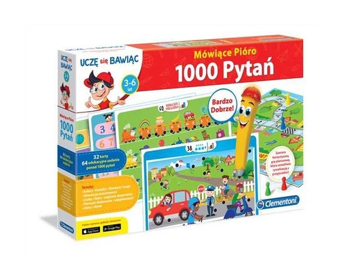 Edukacyjna gra, aby nauczyć się liter, słów, liczb, ilości, kształtów i kolorów. Ponad 1000 quizów, aby się sprawdzić i wyzwać na pojedynek przyjaciół w grze na 2-4 graczy oraz uczyć się w sposób interesujący, zabawny i stymulujący. Dziecko uczy się całkowicie samodzielnie dzięki mówiącemu pióru, które prowadzi