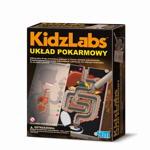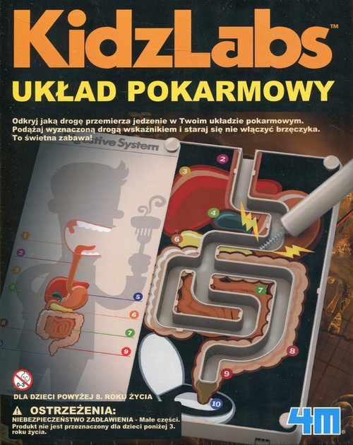 Odkryj jaką drogę pokonuje jedzenie w przewodzie pokarmowym. Podążaj ostrożnie ścieżką przy pomocy różyczki, tak by nie uruchomić dzwonka! Ucz się poprzez zabawę! Zawartość: Podstawa, wskaźnik, zaślepka, pokrywa komory baterii, śruba,  papierowy szablon, plastikowa zatyczka, podstawka oraz szczegółowa instrukcja. Wymagane, a niedołączone do zestawu: bateria 1.5V AAA i śrubokręt krzyżakowy .