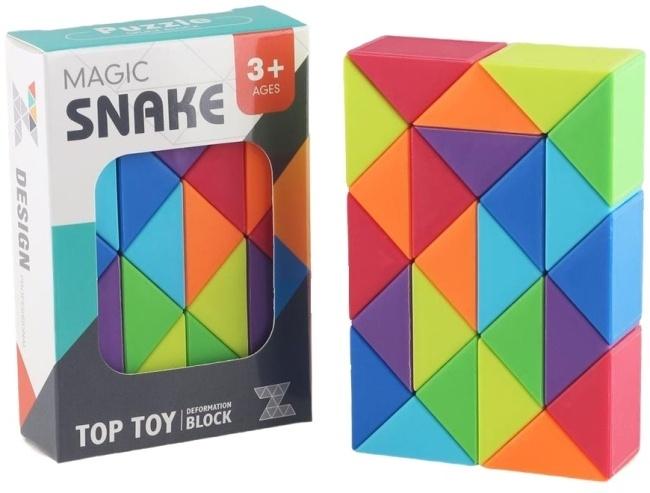 Opis produktuZasady bezpieczeństwaOdkryj fascynujący świat kreatywności z Magic Snake - innowacyjną układanką przestrzenna typu wąż, która zapewni godziny angażującej zabawy. Ta klasyczna łamigłówka składa się z dwudziestu czterech połączonych ze sobą, trójkątnych segmentów w żywych kolorach, takich jak zielony, czerwony, pomarańczowy, niebieski i fioletowy. Dzięki unikalnej konstrukcji, każdy segment można swobodnie obracać o 360 stopni, co pozwala na tworzenie niezliczonych form i kształtów - od prostych zwierząt, przez figury geometryczne, aż po abstrakcyjne konstrukcje. Magic Snake to doskonałe narzędzie do rozwijania wyobraźni przestrzennej, zdolności manualnych i logicznego myślenia zarówno u dzieci, jak i dorosłych. Wykonany z trwałego tworzywa sztucznego, jest bezpieczny i wytrzymały, zapewniając długotrwałą rozrywkę. Idealny prezent dla każdego, kto ceni sobie kreatywne wyzwania i edukacyjną zabawę. Produkt przeznaczony dla dzieci powyżej 3. roku życia. x