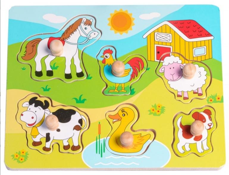 Układanka drewniana z pinezkami Farma - 6 elementów.