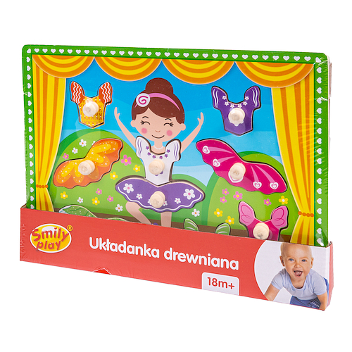 Opis produktuZasady bezpieczeństwaSMILY PLAY UKŁADANKA DREWNIANIA BALETNICA UCHWYTY SPW83615 Układanka przedstawia baletnicę i jej stroje. Każdy element ma wygodny uchwyt dla małych rączek, dzięki któremu dziecko łatwo wyjmie i ponownie go dopasuje a jednocześnie utrwala prawidłowy chwyt rączką. x