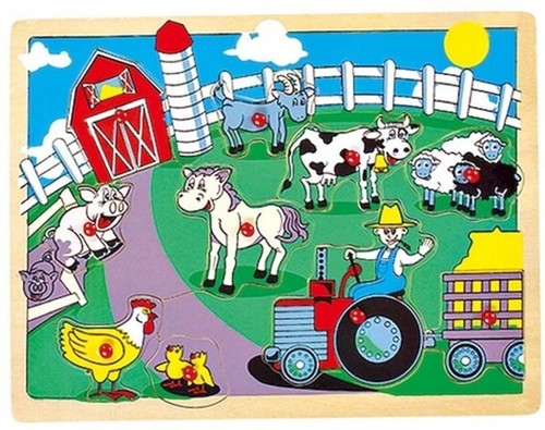 Każdy z elementów do układania posiada pinezkę, dzięki której dziecko z łatwością dopasuje element do odpowiedniego otworu.