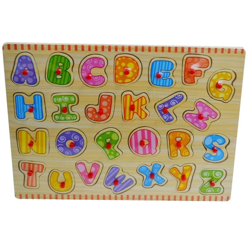 Drewniane puzzle dla najmłodszych. Za pomocą uchwytów przymocowanych do drewnianych elementów, dziecko może wygodnie układać kolorowe puzzle.