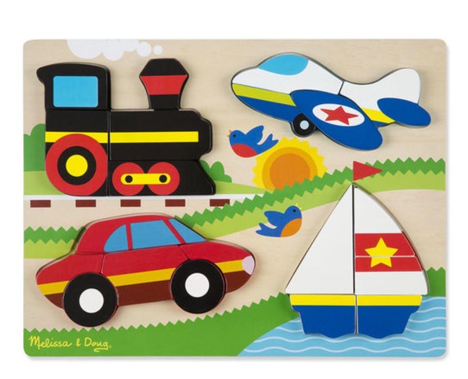 Dopasuj kształty do ramki tak by powstały cztery pojazdy. Proste puzzle z 20 drewnianymi elementami przyciągną uwagę malucha, zachęcą do ćwiczenia motoryki i myślenia przestrzennego. Prosta zabawa przy której można rozmawiać, opisywać co się widzi i co ma jaki kolor. Na pewno przyciągnie uwagę malucha na długi czas.