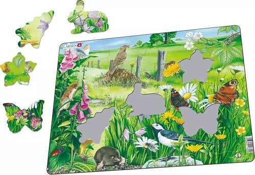 Oddychaj świeżym powietrzem pod bladym błękitem nieba i znoś spokój, ciszę i wolność w ogrodzie natury. Ta idylliczna układanka ogród natury jest w komplecie z 20 elementami. Niektóre z kawałków mają wygodny kształt motyla, kwiatu i królika. Malownicza układanka zawiera ilustracje fioletowych naparstnic, pomarańczowego czubka (motyla), skowronka i jego piskląt, mniszka lekarskiego, szpaków, brzęczącego szerszenia, rzymskiego ślimaka, pięknej kolekcji kwiatów, skaczących królików, pełzającej gąsienicy, brązowej myszy, ropuchy, wielkiego zielonego konika polnego, czerwonego motyla admirała, doskonałego pawia, biedronki, przyjaznego olbrzymiego pająka, kreta kopiącego błoto i zielonego żuka tygrysiego, otoczonego różnorodnymi kwiatami natury. Ta układanka jest idealna dla mniejszych dłoni, ponieważ umożliwia młodszym dzieciom pomoc w stymulowaniu ich umysłu.