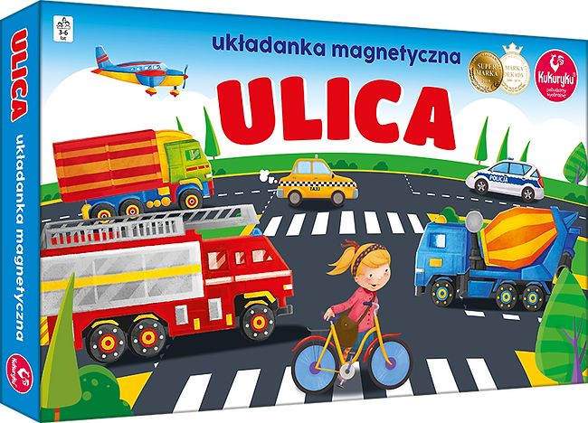 „Ulica” to kolejna z układanek magnetycznych Kukuryku. Tym razem w miejskim otoczeniu dzieci mogą układać różnego rodzaju pojazdy.